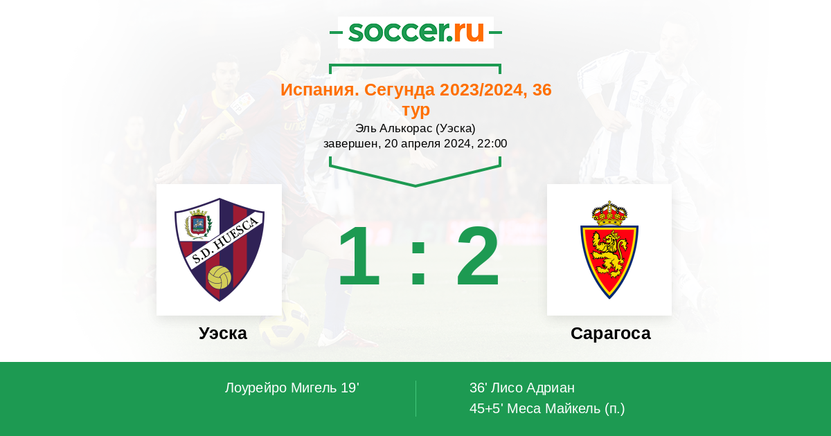 36' (1:1) Лисо Адриан (33) (Лопес Ллуис (24))