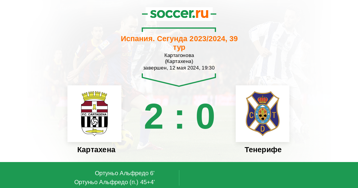 45+4' (2:0) Ортуньо Альфредо (9)