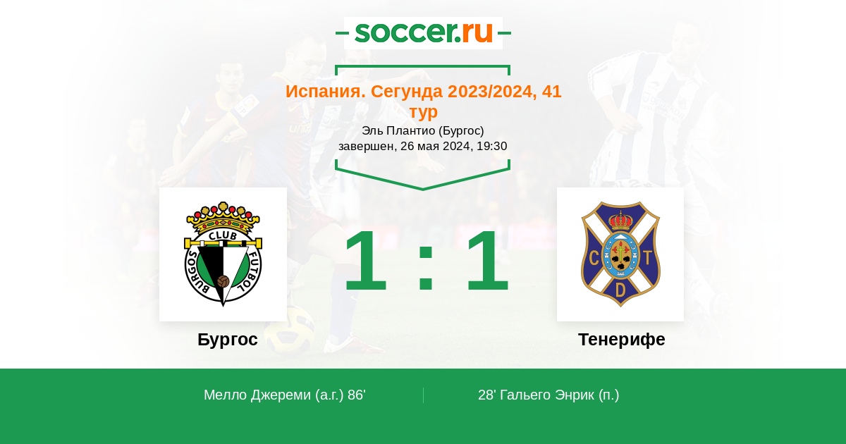86' (1:1) Автогол Мелло Джереми (22)