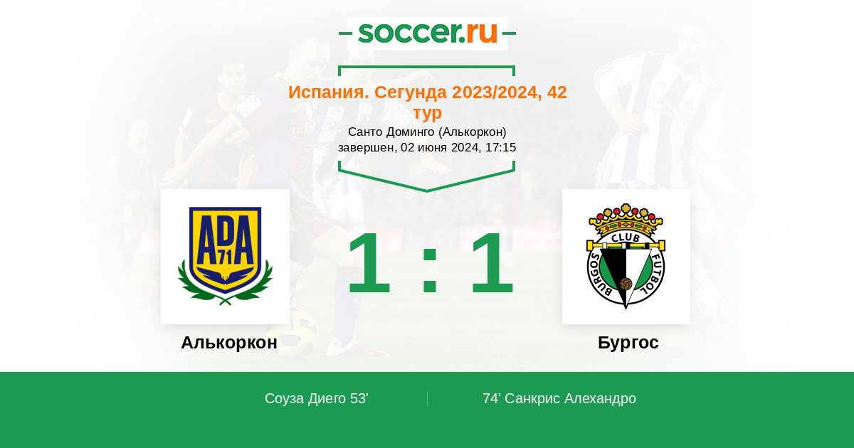 74' (1:1) Санкрис Алехандро (11) (Курро Санчес (16))