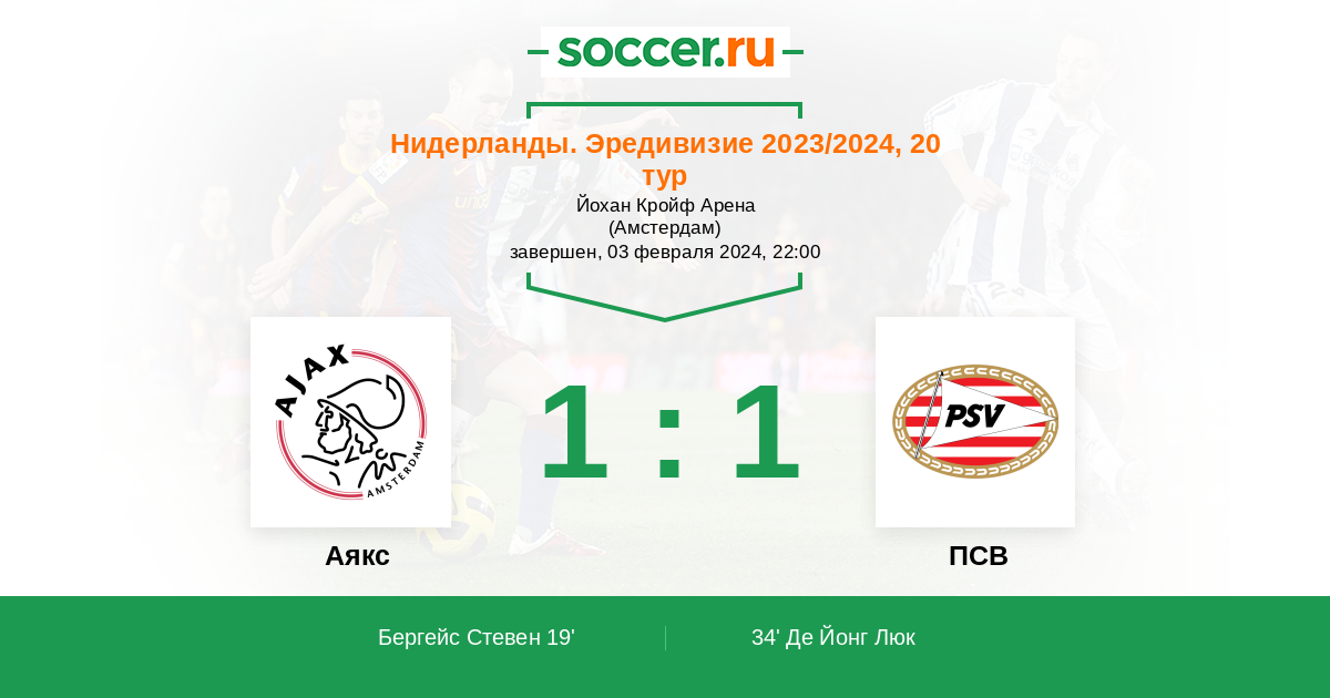 34' (1:1) Де Йонг Люк (9) (Сайбари Исмаэль (34))