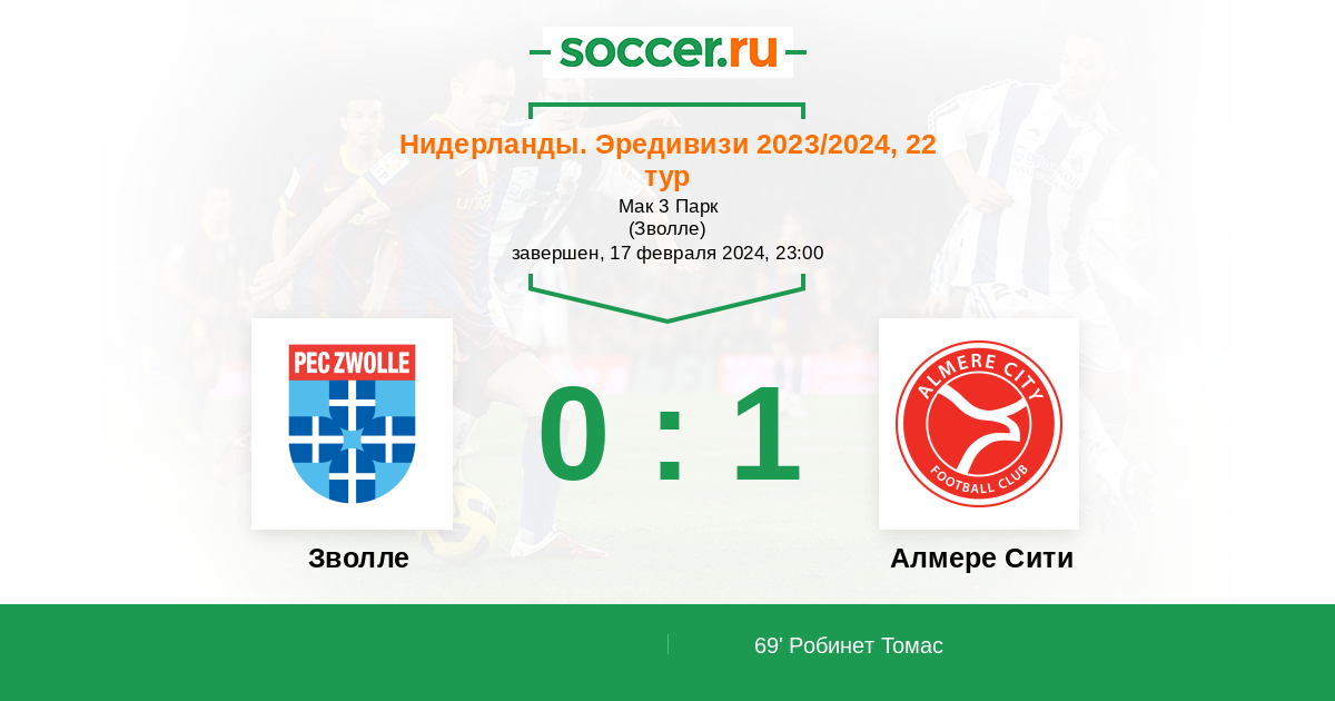 69' (0:1) Робинет Томас (9) (Ресинк Стейе (28))