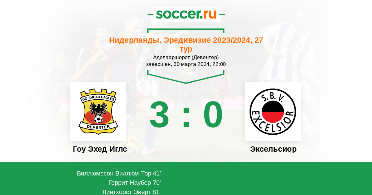 81' (3:0) Линтхорст Эверт (8) (Кюйперс Бас (5))