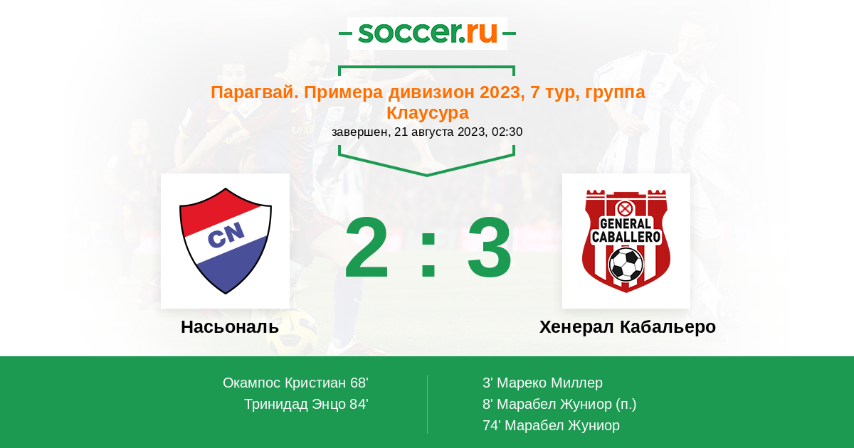 84' (2:3) Тринидад Энцо (17) (Окампос Кристиан (28))