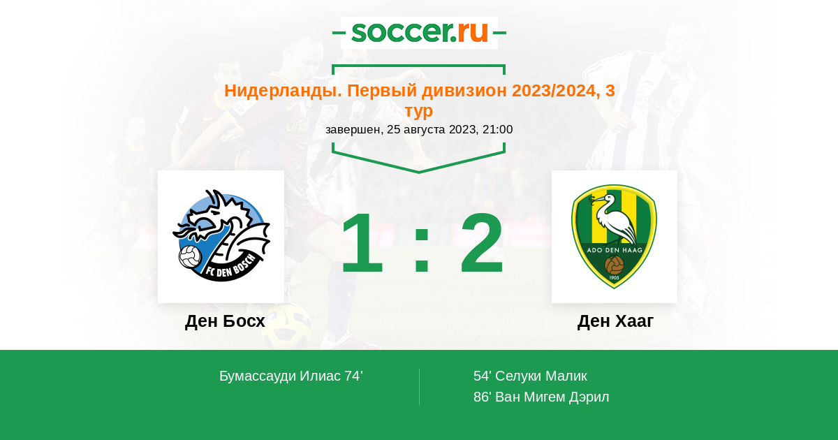 74' (1:1) Бумассауди Илиас (40) (Мелдерс Рик (18))