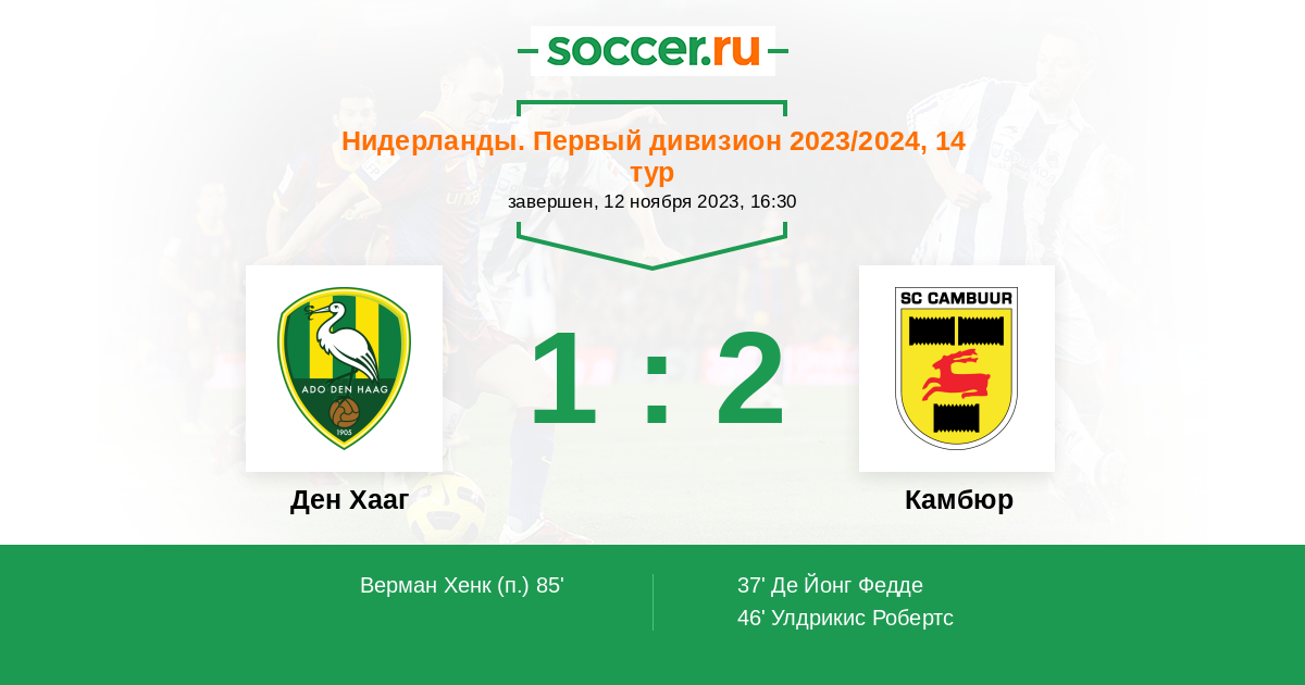 37' (0:1) Де Йонг Федде (10) (ван Кам Даниэль (8))
