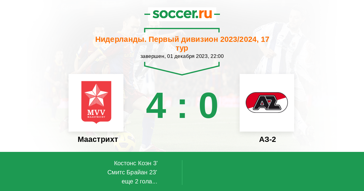 Запасные: 22 Роча Дайлон (с 32'), 18 Слегерс Ферре (с 46'), 9 Реманс Март (с 84'), 6 Эль Басри Набиль (с 84'), 39 Си Кану Алассан (с 88'), 14 Пендерс Сауль, 1 Ламбрикс Тийс, 26 Хофланд Милан, 25 Техубиджулув Джайро