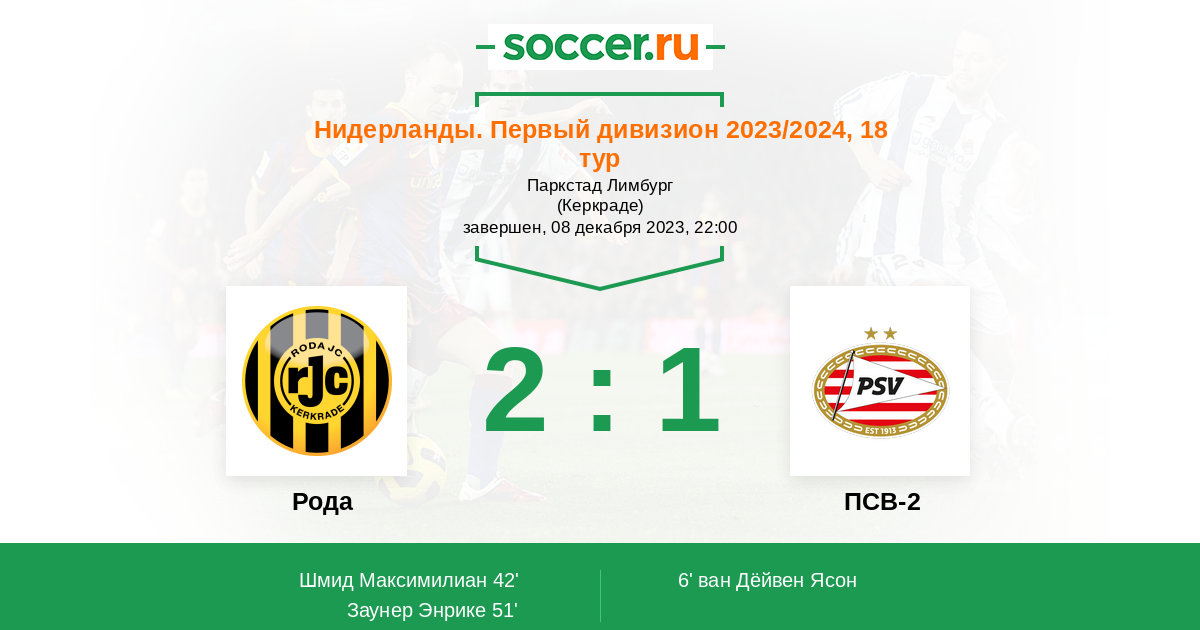 6' (0:1) ван Дёйвен Ясон (7) (Унекен Йеспер (9))