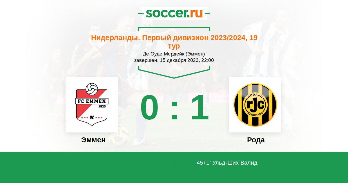 45+1' (0:1) Ульд-Ших Валид (10) (Данеелс Леннерс (14))