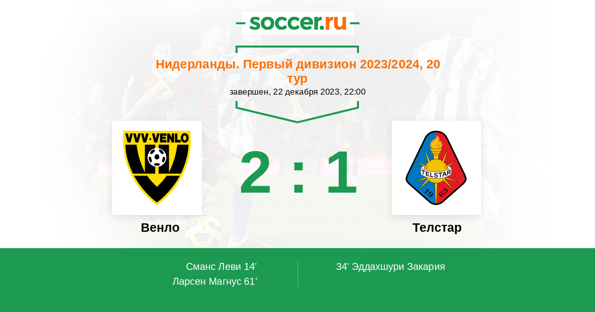 14' (1:0) Сманс Леви (14) (Латоверс Робин (2))