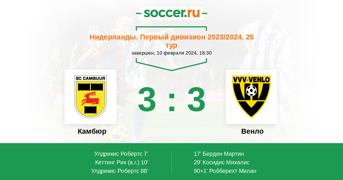 90+1' (3:3) Робберехт Милан (7) (Досберг Пепин (18))