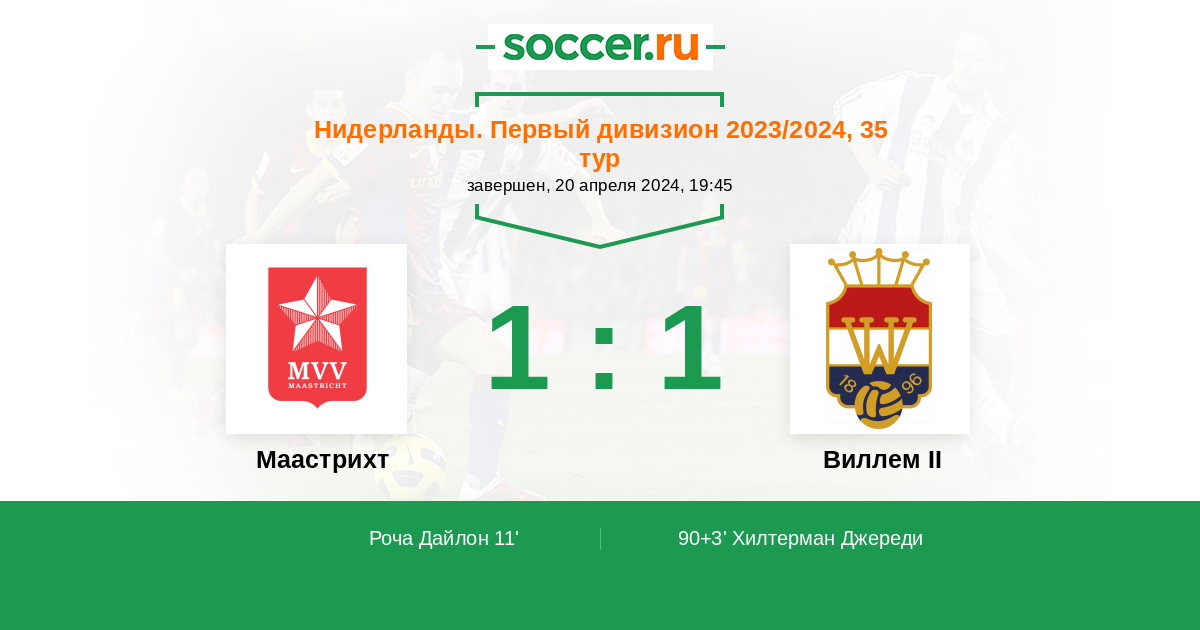 90+3' (1:1) Хилтерман Джереди (9) (Мервелд Ринго (16))