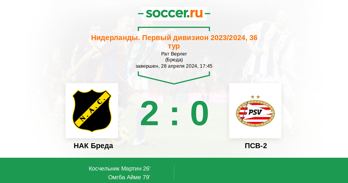 79' (2:0) Омгба Айме (22) (Ван ден Берг Ян (5))