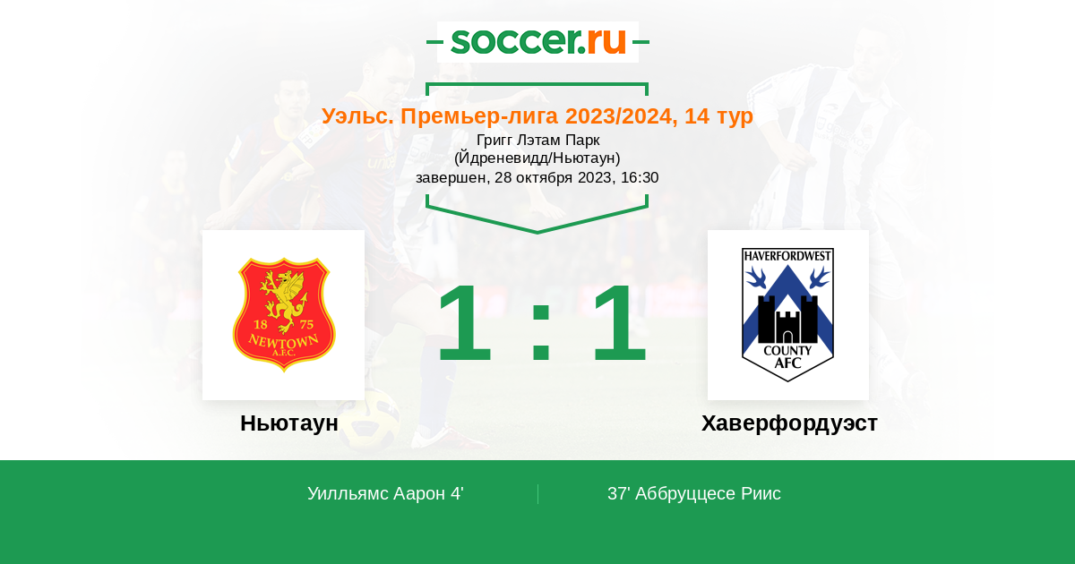 4' (1:0) Уилльямс Аарон