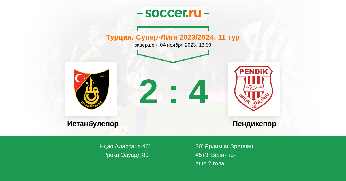 30' (0:1) Ярдимчи Эренчан (99) (Велинтон (23))
