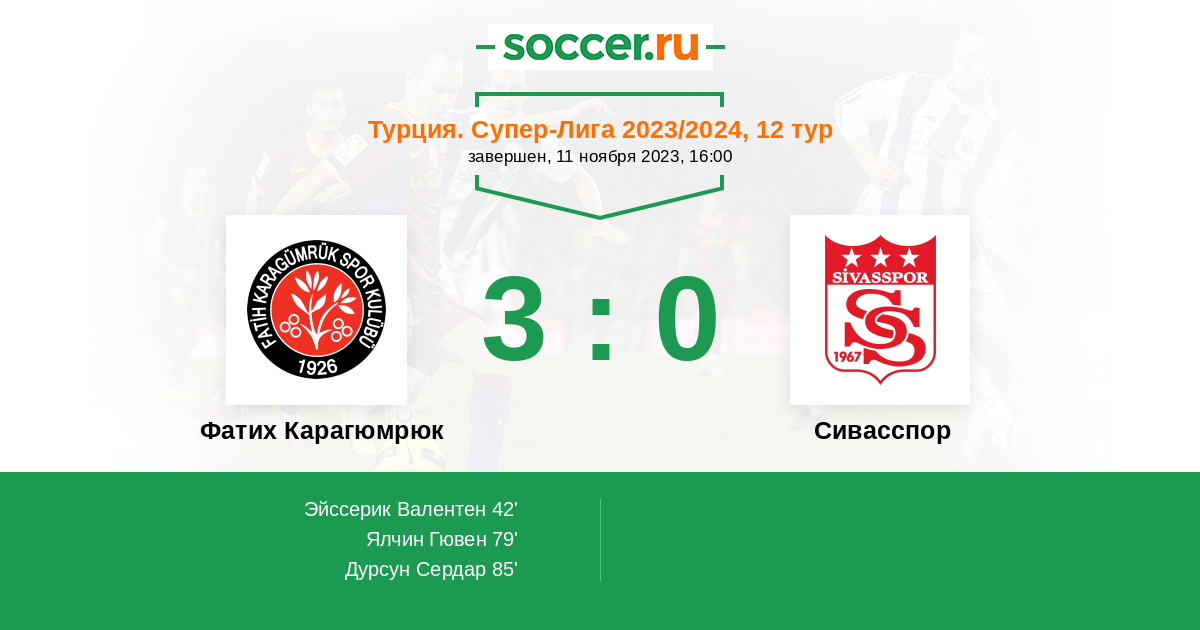 Запасные: 9 Манай Рей (с 46'), 10 Н'Жи Клинтон (с 57'), 14 Камара Самба (с 58'), 5 Пармак Абдулкадир (с 77'), 19 Квет Роман (с 77'), 58 Эрдал Зия, 37 Арслан Хакан, 15 Эрентюрк Эрхан, 76 Кайа Эрен, 99 Палули Мурат