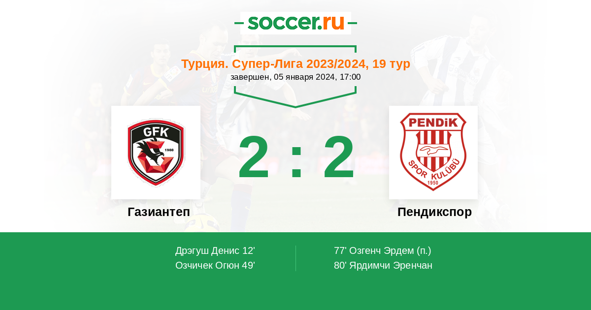 80' (2:2) Ярдимчи Эренчан (99) (Гёкхан Кайя (58))