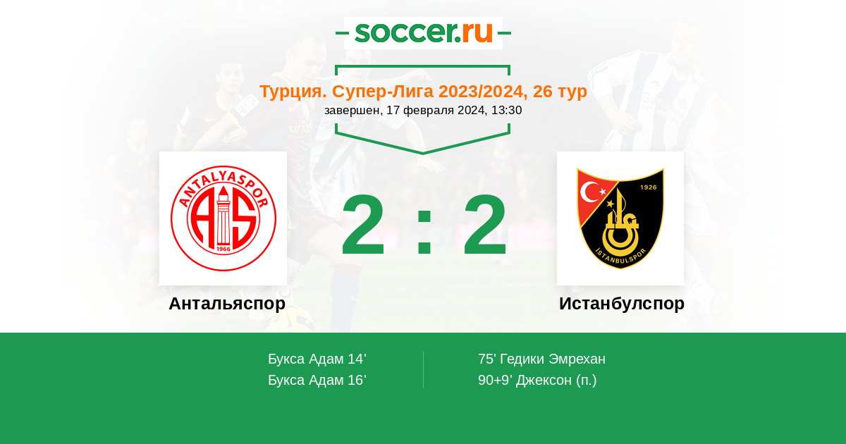 Запасные: 19 Акьол Уфук (с 63'), 17 Йесилюрт Эрдоган (с 63'), 6 Ракип Эрдаль (с 76'), 20 Милошевич Дени (с 83'), 10 Ларссон Сэм, 24 Устюн Игит, 97 Ассомбалонга Бритт, 44 Налдо, 21 Топрак Омер, 23 Дадакдениз Мехмет Атаберк