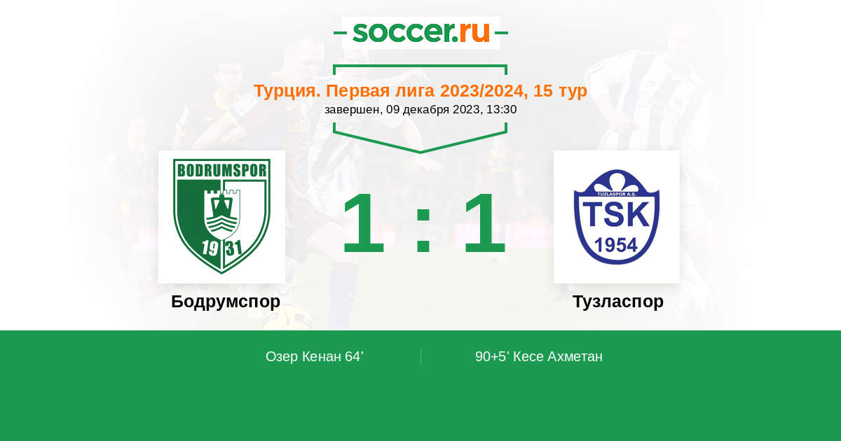 64' (1:0) Озер Кенан (10)
