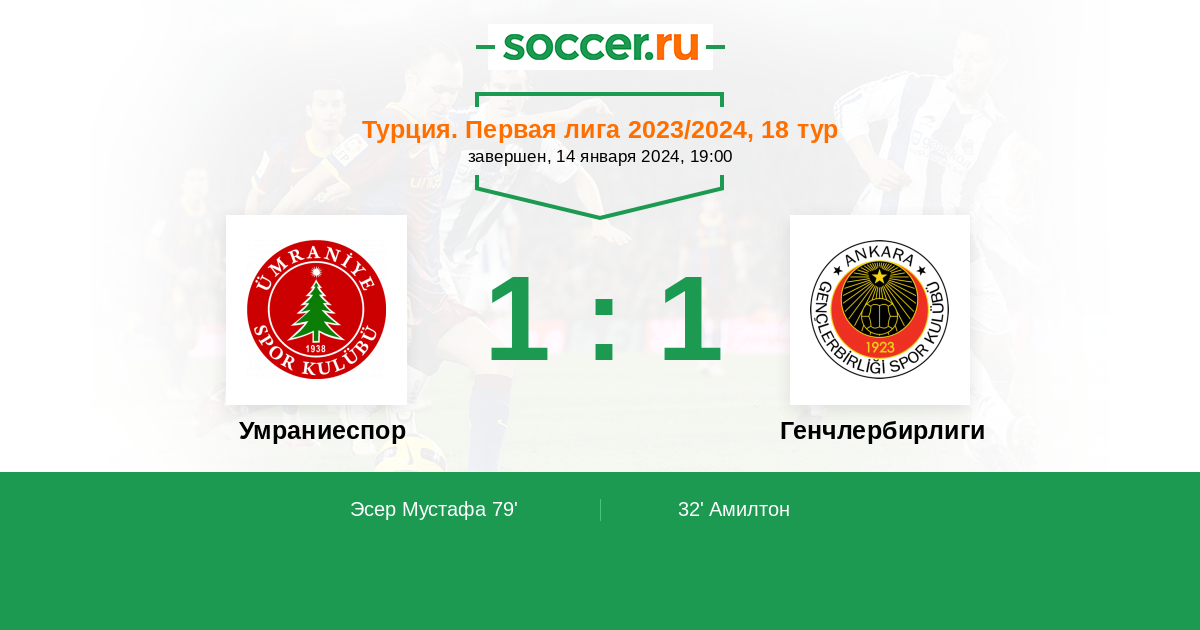 32' (0:1) Амилтон (89) (Ятабаре Мустафа (9))