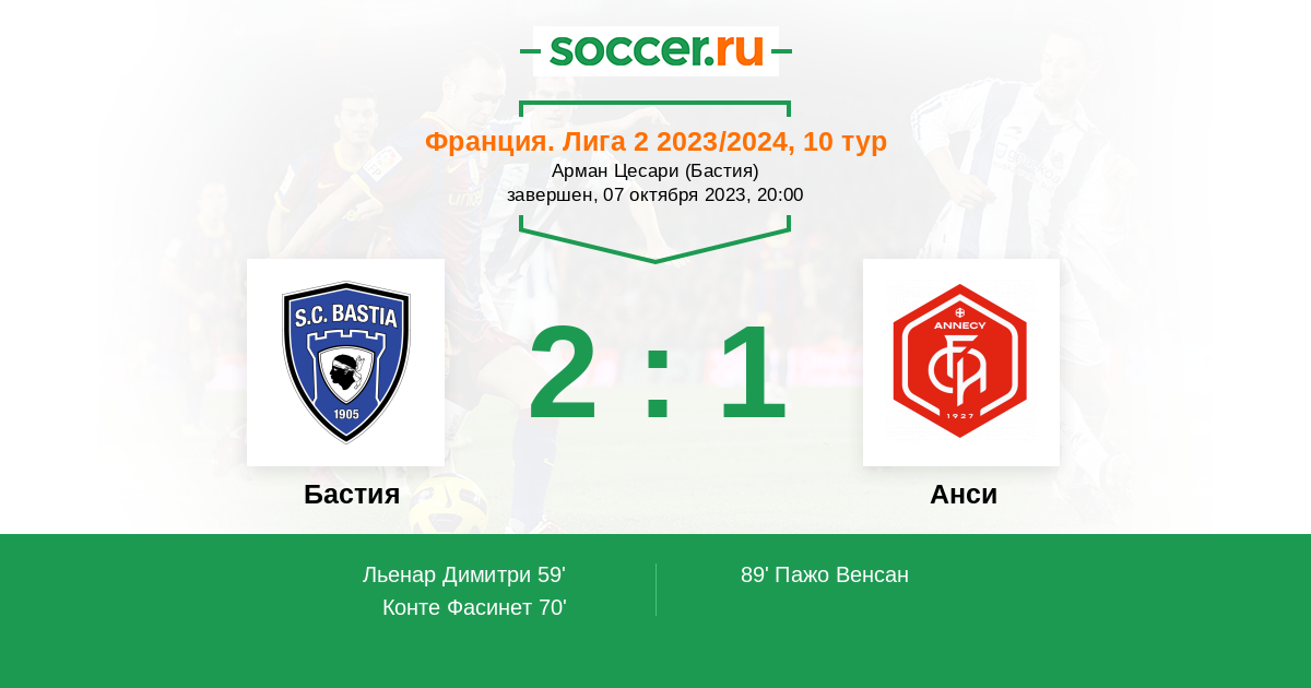 70' (2:0) Конте Фасинет (31) (Бьянчини Флориан (17))