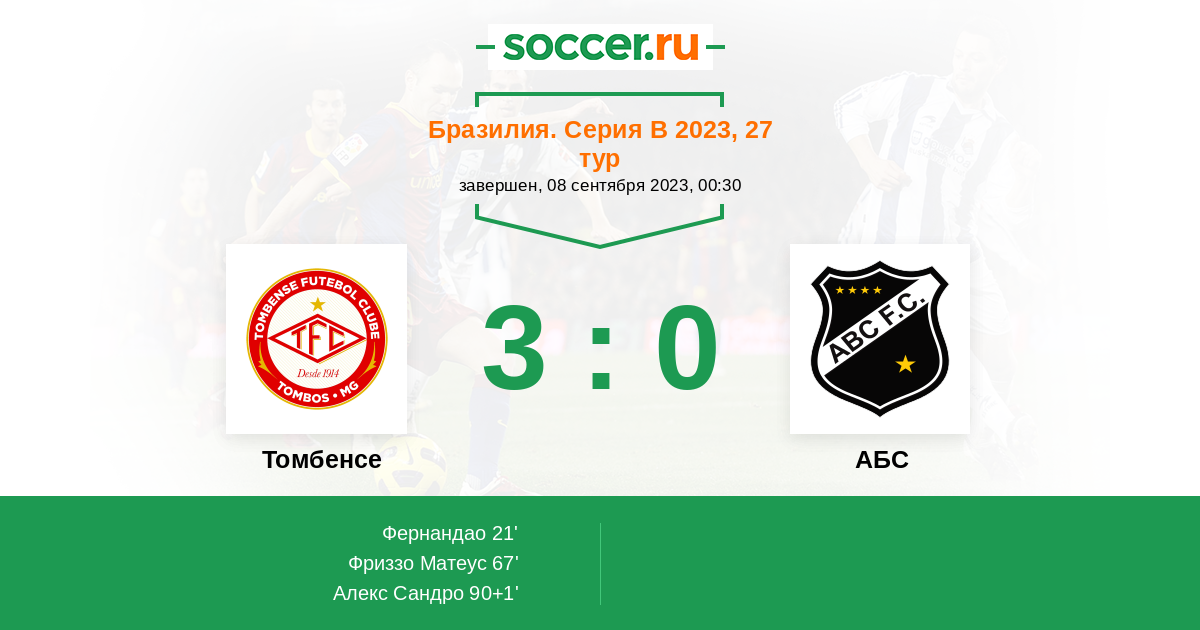 21' (1:0) Фернандао (9) (Педро (2))
