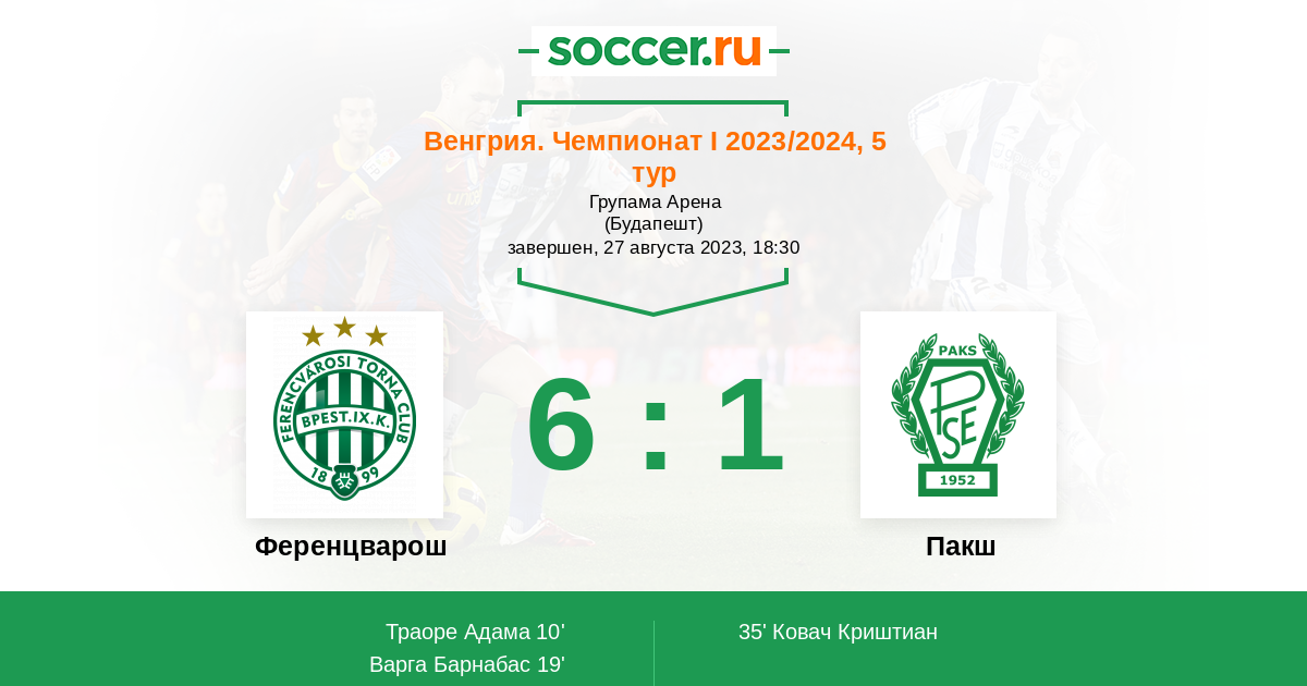 43' (4:1) Варга Барнабас (19) (Траоре Адама (20))