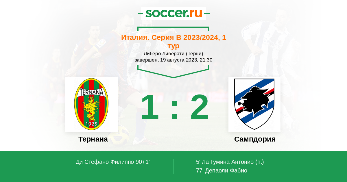 Запасные: 66 Пиихтия Никлас (с 46'), 9 Раймондо Антонио (с 46'), 20 Пагера Фабрицио (с 67'), 28 Ди Стефано Филиппо (с 73'), 17 Фавилли Андреа (с 77'), 13 Мантовани Валерио, 73 Маргинеан Юлиус, 77 Бразао Габриэль, 4 Соренсен Фредерик, 19 Капуано Марко, 33 Травальини Кристиан, 11 Капанни Габриэле