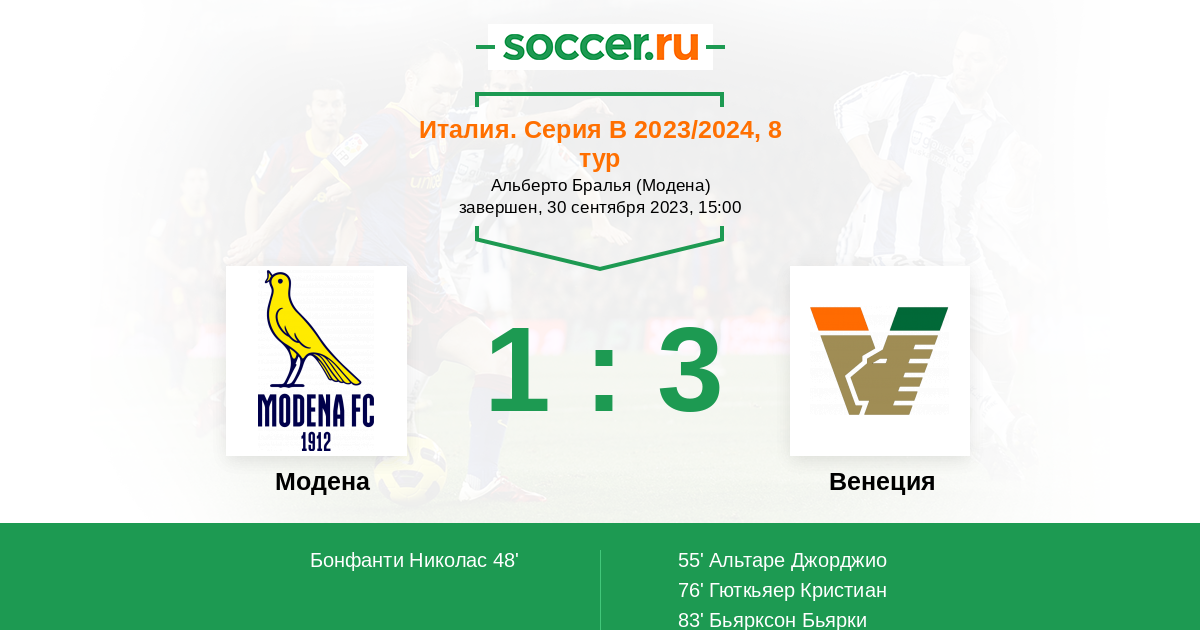 55' (1:1) Альтаре Джорджио (15) (Кандела Антонио (27))