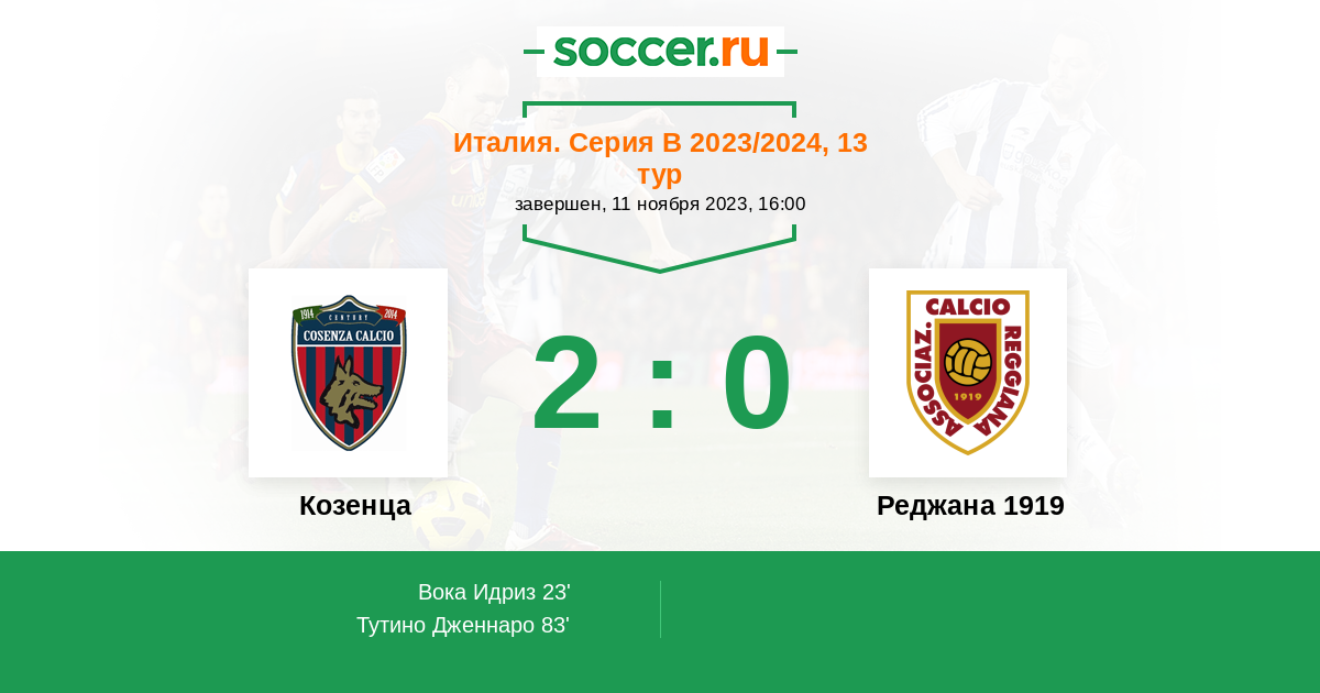 23' (1:0) Вока Идриз (42) (Тутино Дженнаро (9))