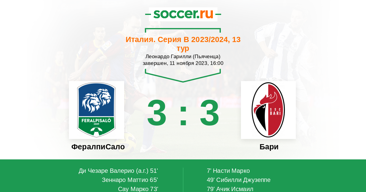 73' (3:2) Сау Марко (25) (Феличи Маттиа (97))