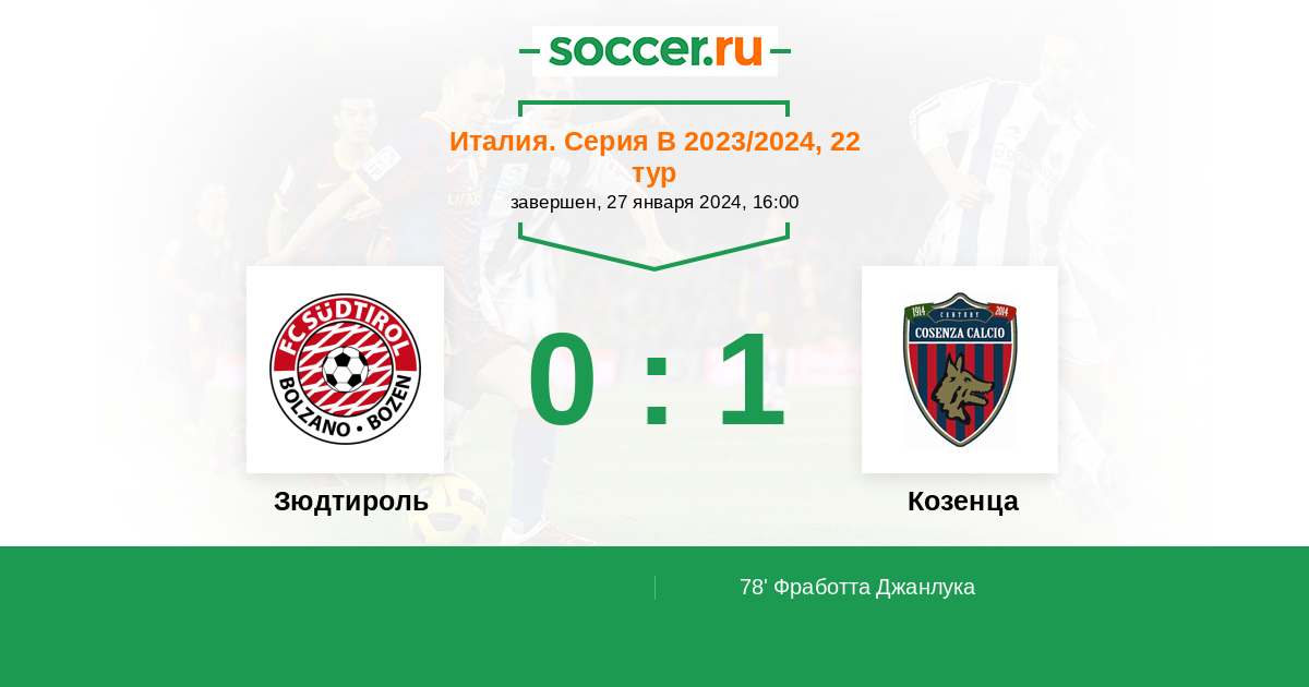 78' (0:1) Фработта Джанлука (99) (Зуккон Федерико (98))