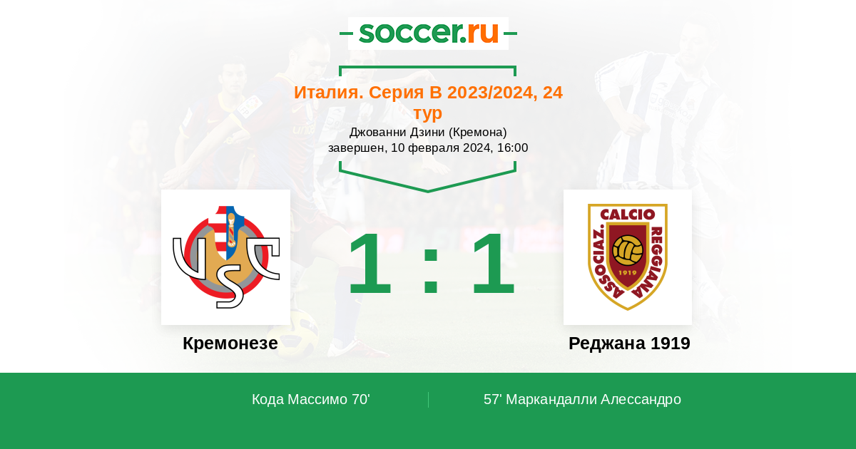 57' (0:1) Маркандалли Алессандро (27) (Мелегони Филиппо (72))