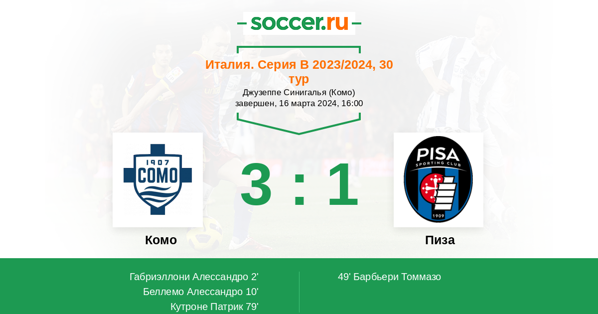 79' (3:1) Кутроне Патрик (10) (Фумагалли Томмазо (99))