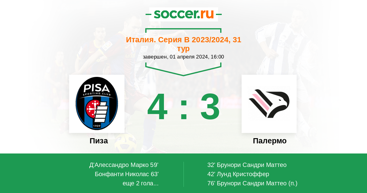 59' (1:2) Д'Алессандро Марко (77) (Беруатто Пьетро (20))