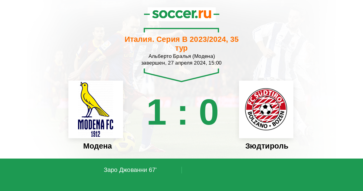 67' (1:0) Заро Джованни (19) (Баттистелла Томас (23))