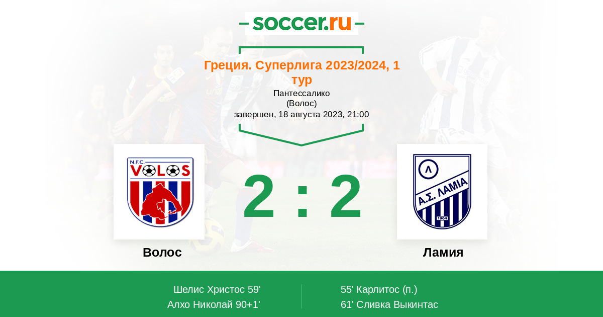 Запасные: 26 Лейк Тошио (с 66'), 29 Акунья Матиас (с 76'), 18 Тошич Зоран (с 84'), 6 Цандарис Теофанис (с 85'), 9 Лонго Самуэле, 94 Гианнутсос Гиоргос, 55 Кошелев Алексей, 19 Малчи Флосард, 2 Василантонопулос Ставрос