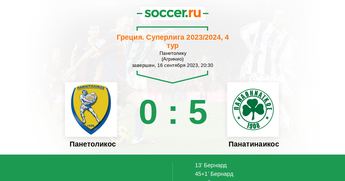 45+1' (0:2) Бернард (10) (Ионнидис Фотис (7))