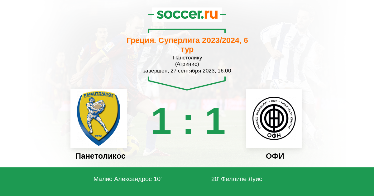 10' (1:0) Малис Александрос (47) (Педру Жоау (45))