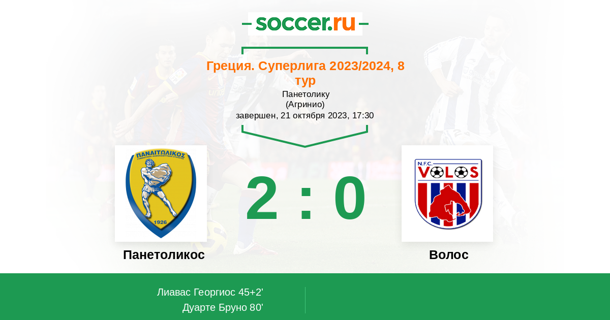 45+2' (1:0) Лиавас Георгиос (54)