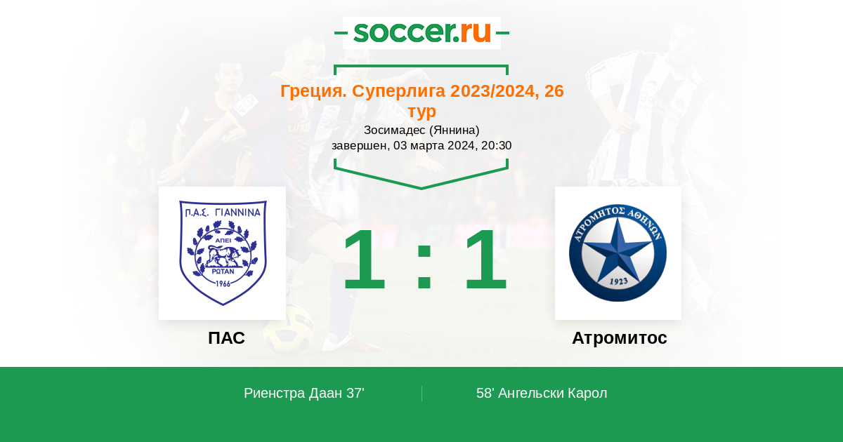 58' (1:1) Ангельски Карол (14) (Цорвас Гиоргос (99))