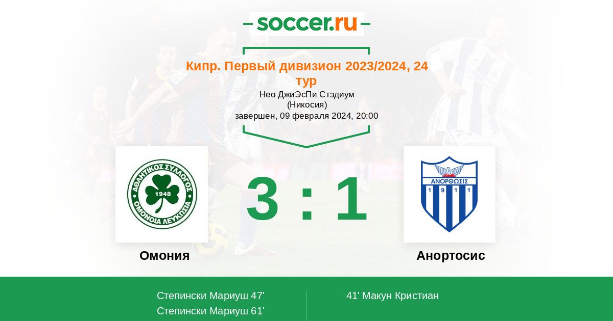 Запасные: 90 Безус Роман (с 46'), 9 Какулис Андроникос (с 78'), 6 Маркос Сиприано (с 87'), 17 Лецякс Ян (с 90+4'), 74 Андреу Панайотис (с 90+4'), 8 Кассама Морету, 15 Бакич Душан, 71 Папастиляну Михалис, 73 Милетич Неманья, 79 Озлер Тахсин, 88 Амоо Акинкунми, 91 Келепешис Сотерис
