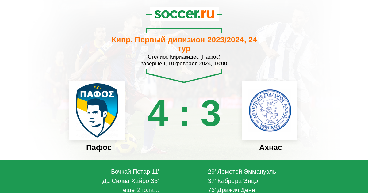 Запасные: 14 Мескида Николас (с 72'), 28 Стилиану Мариос (с 72'), 77 Христофи Деметрис (с 72'), 7 Элиа Константинос (с 83'), 29 Иоаннидис Николаос (с 89'), 1 Богатинов Мартин, 22 Иоанну Петрос, 23 Артуматас Панайотис, 24 Бекер Диего, 26 Маркович Душан