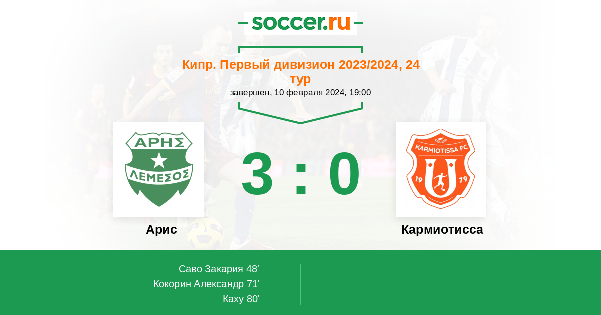 Запасные: 3 Каху (с 39'), 9 Кокорин Александр (с 46'), 14 Гомис Артур (с 46'), 37 Соке Юлиуш (с 67'), 70 Семеду Эди (с 73'), 10 Шполярич Матея, 12 Деметриу Андреас, 17 Матысик Милош, 31 Брорссон Франц, 90 Софрониу Эллинас, 91 Задро Мислав, 99 Шуманский Артем