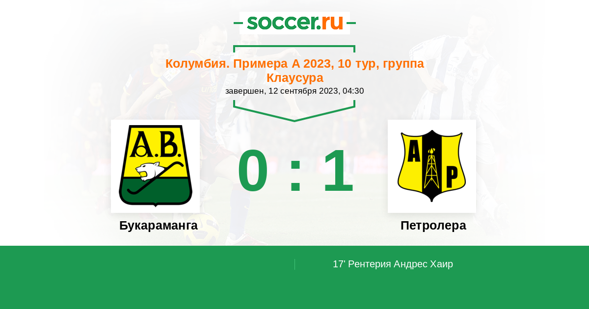 17' (0:1) Рентерия Андрес Хаир (11)