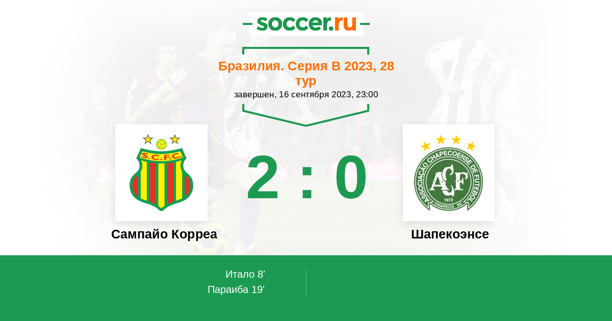 19' (2:0) Параиба (21) (Феррейра де Азеведо Робсон Робиньо (10))