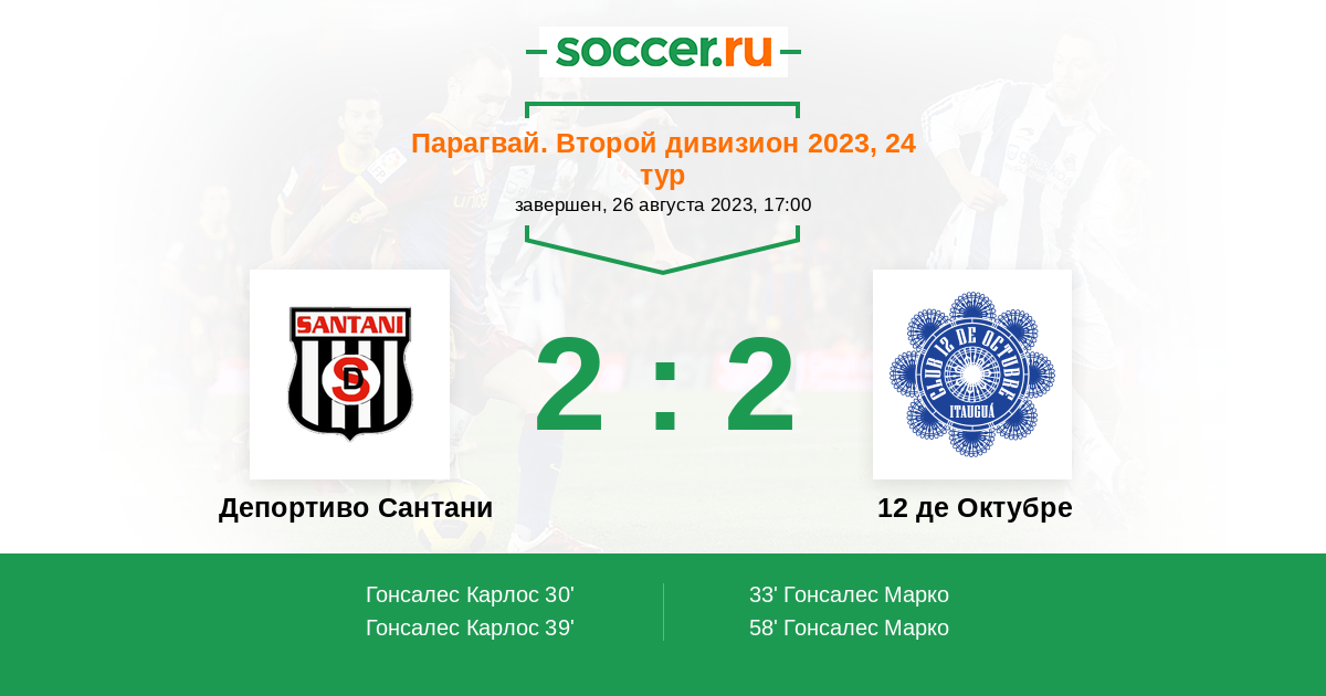 39' (2:1) Гонсалес Карлос (32)