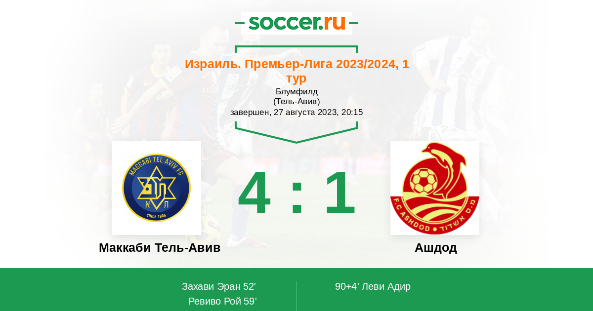 52' (1:0) Захави Эран (7) (Милсон (17))