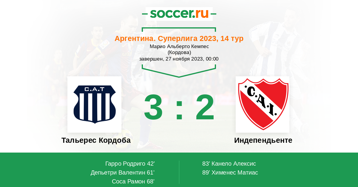61' (2:0) Депьетри Валентин (15) (Соса Рамон (24))