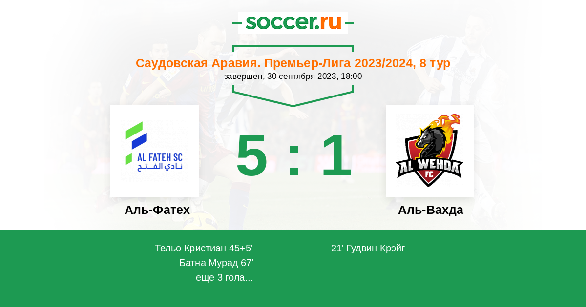 21' (0:1) Гудвин Крэйг (23) (Фаджр Файсал (76))